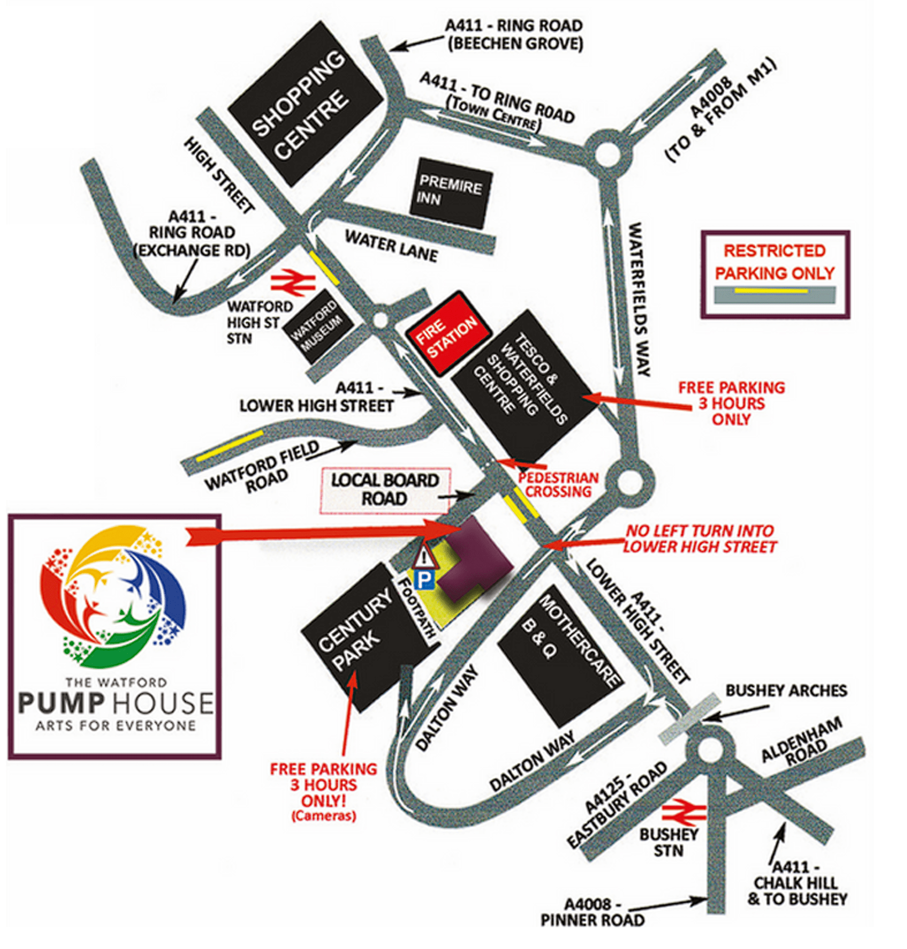 PLEASE NOTE: due to the one-way system it is only possible to approach the Pump House via Lower High Street from the Watford Ring Road.
